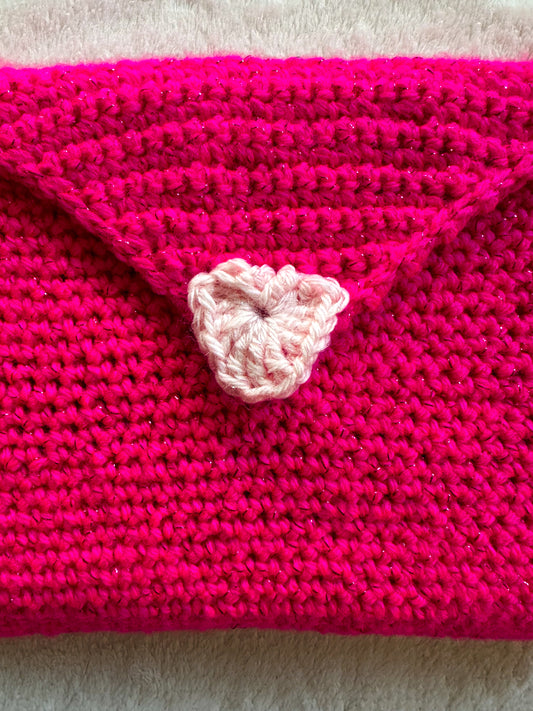 Handmade Crochet Love Letter Book Sleeve Envelope in Hot Pink