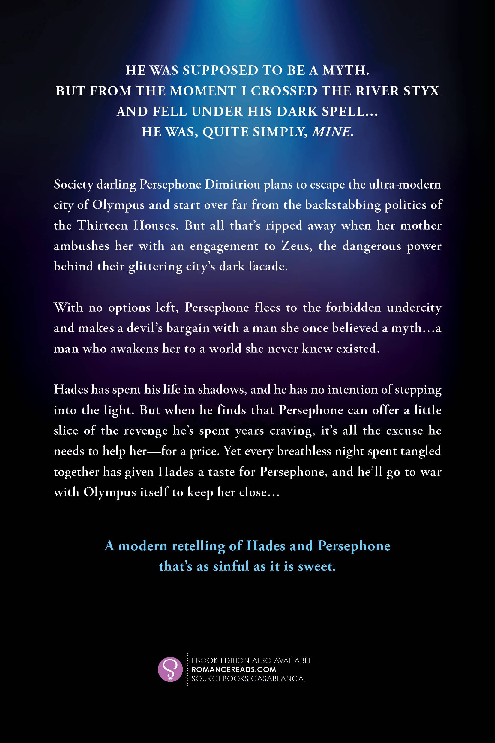 Hades has spent his life in the shadows, and he has no intention of stepping into the light. But when he finds that Persephone can offer a little slice of the revenge he's spent years craving, it's all the excuse he needs to help her—for a price. Yet every breathless night spent tangled together has given Hades a taste for Persephone, and he'll go to war with Olympus itself to keep her clsoe.