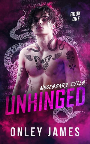 Unhinged is a fast-paced, roller coaster ride of a romance with an HEA and no cliffhangers. It features a dirty-talking, possessive psychopath and a sweet cinnamon roll of a boy with Daddy issues and a core of steel. There's gratuitous violence, very dark humor, enough steam to fog up a hundred car windows, and something a lot like love. This is book one in the Necessary Evils series. Each book follows a different couple.
